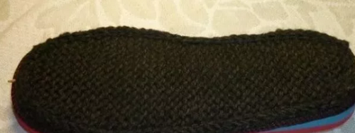 钩完一圈后把线剪断,起头5-7针打鞋垫,打鞋垫一定要二只一起打,一是打出来的鞋垫,大小一样,二是可以节省比划鞋垫大小的时间。