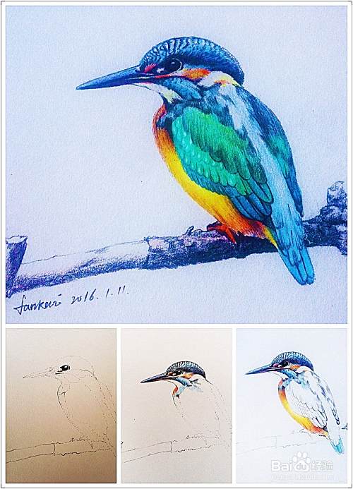 近日,彩铅画受到许多同学们的热爱,今天介绍一幅《彩铅 翠鸟》的步骤教程