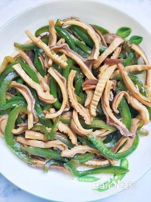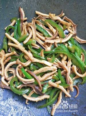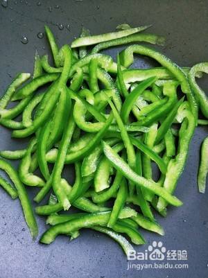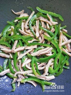 锅中倒油,开大火,放入青椒丝进行翻炒。