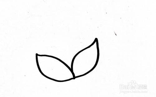 先在纸上画两片椭圆形的叶子,顶端画尖,叶子的根部画在一起。