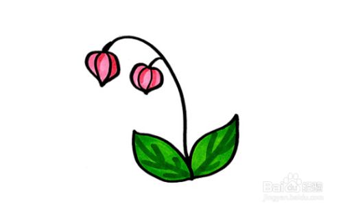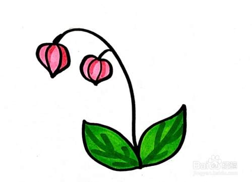 最后用墨绿色的画笔在叶子你面画出经脉的轮廓,再给灯笼果涂上粉色,简单的灯笼草简笔画就完成了