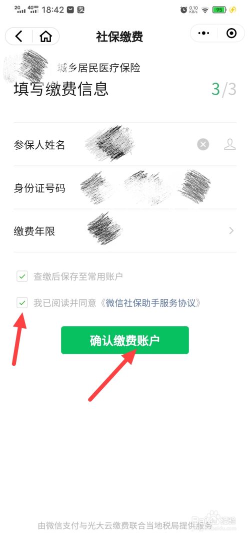 输入相关信息,勾选同意服务协议,点击确认缴费账户进入下一步。