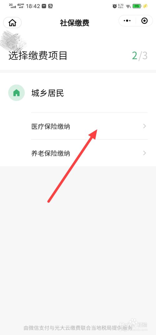 选择你要交的社保类型,这里展示医保缴费。点击医疗保险缴纳。