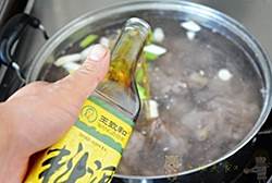 加入适量的清水,注意是凉水额,将羊肉块盖住,加入料酒和白芷;