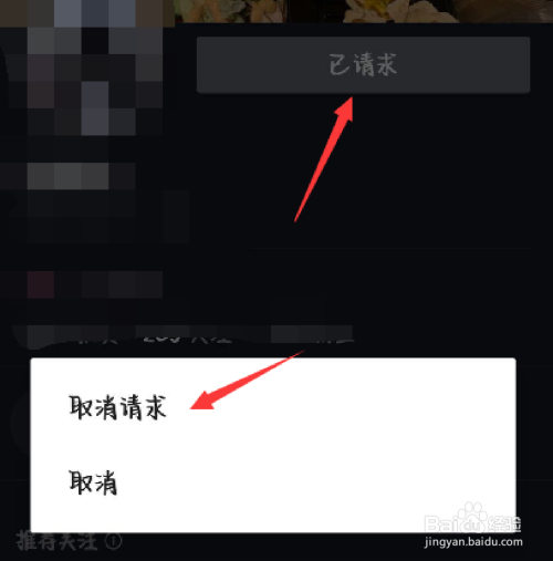 如果不想关注对方了,可以点击”已请求“,再点击”取消请求“取消。