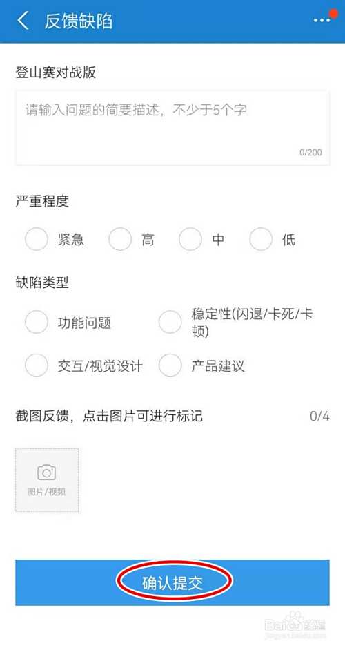 打开游戏界面,选择右上方的反馈,打开反馈缺陷页面,填写遇到的问题,选择确认提交反馈问题;