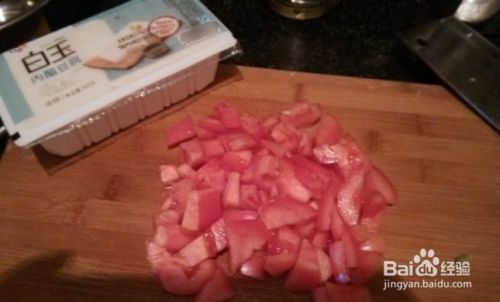 首先将西红柿洗净切丁。