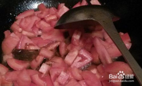 炒出西红柿水分后,再放放入水。