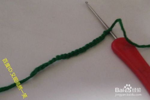 将毛线打一个活结,钩针伸进活结里面,将活结稍稍的拉紧一下,然后钩针挂线,依次拉20个辫子针出来。
