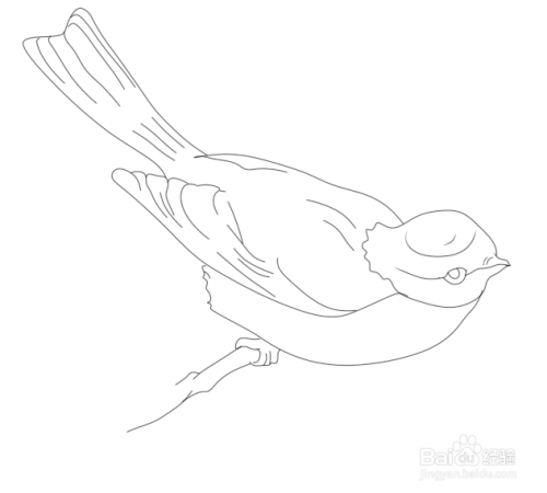 从背部画出小鸟的腹部和抓住树枝的爪子。