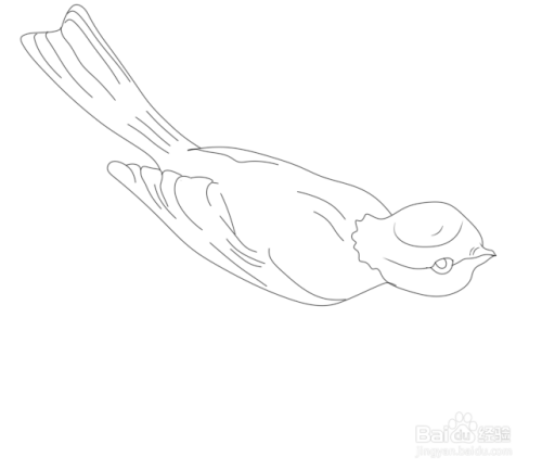 从头部画出小鸟的背部和长长的尾巴,如图所示。