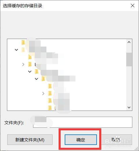 在【选择缓存的存储目录】中选择合适的【文件夹】,点击【确定】。