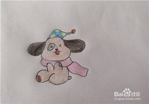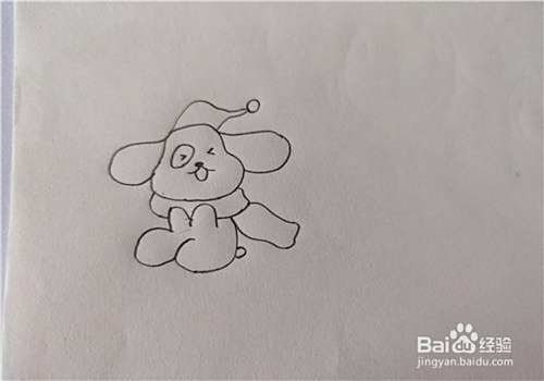 然后,我们在纸上画出斑点狗的围巾,如图所示。