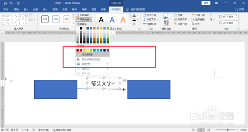 在WORD文档中,插入箭头,在箭头的上方添加横排文本框,在文本框内输入文字后,设置文本框无轮廓。