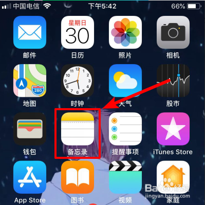 我们打开自己的苹果手机,进入后找到系统自带的“备忘录”应用进入。
