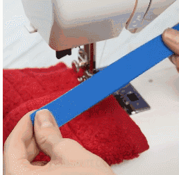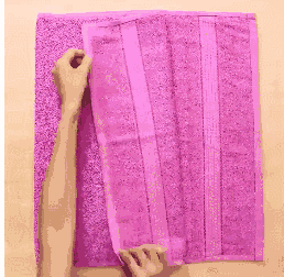 将旧毛巾折叠到合适的宽度,然后确定开几个口袋,接着把毛巾两端缝起来,按照分隔好的宽度依次缝合,最后缝上弹力绳。