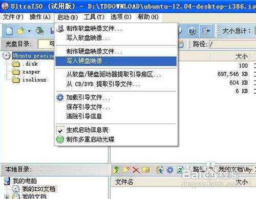 安装之后我们打开软件,点击文件打开,找到我们刚才进行下载的Ubuntu的ISO文件,然后点击打开,完成ISO文件的加载。接着我们插入U盘,点击UltraISO启动选项,然后找到写入硬盘映像选项,点击它进入到将要进行操作的界面。