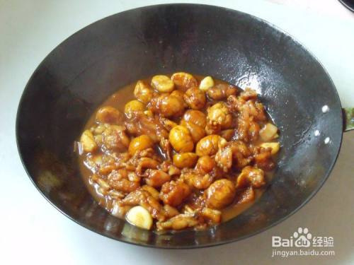 再把板栗和牛蛙倒进去烧开,然后调至小火煮5-10分钟
