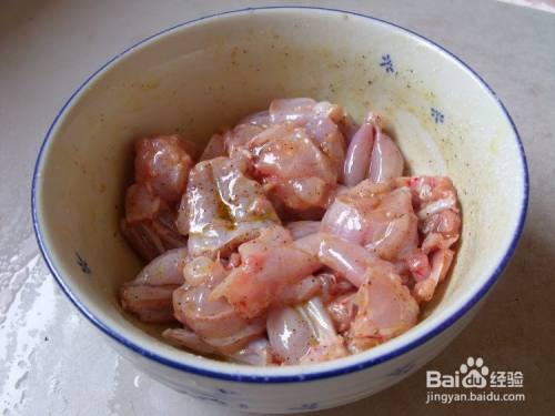 把牛蛙洗净后切成块状,把半茶匙盐、半勺食用油、黑胡椒、干淀粉倒进去,抓匀后放进冰箱里腌制10分钟