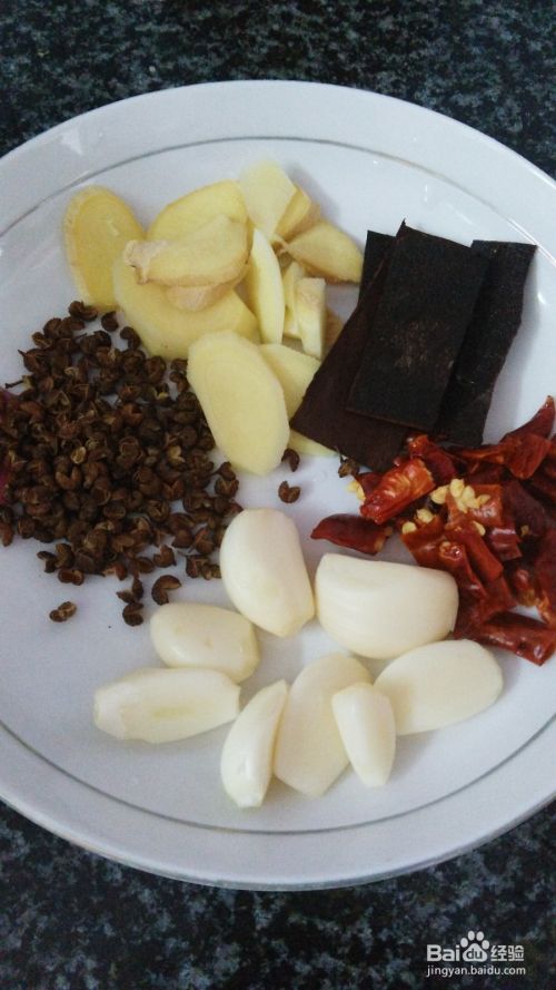 准备好必要的味料:姜、蒜、桂皮、花椒、干辣椒;