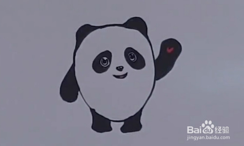然后,用黑色马克笔加深线条并画出吉祥物的耳朵、眼睛、手脚的细节。