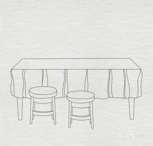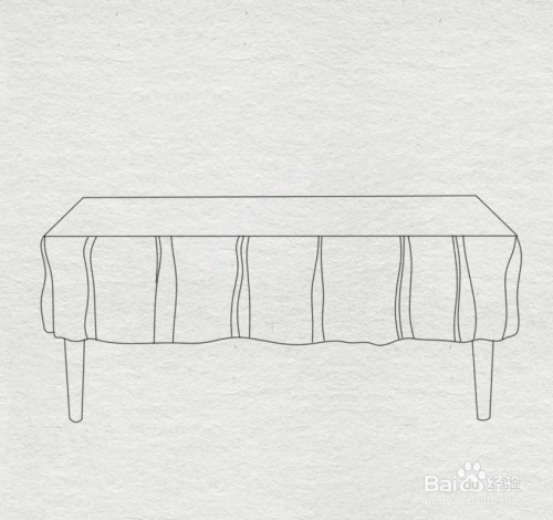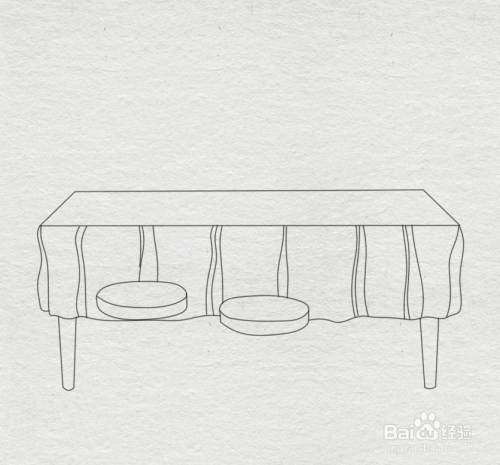 在桌布底部画出可见的桌腿轮廓,注意整体比例关系。