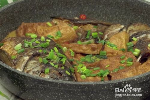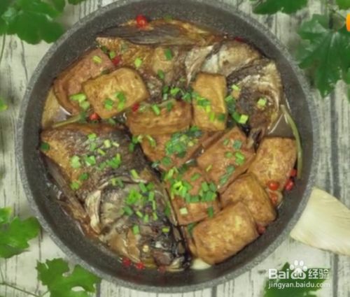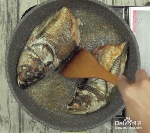 鱼头煎好后放入姜蒜,小米椒,盐,倒入适量热开水,放入豆腐盖上锅盖中小火焖10分钟。