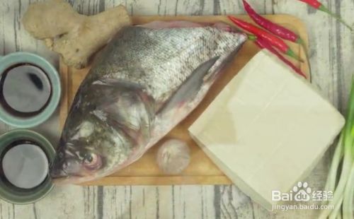 准备食材,鱼头,豆腐,小米椒,生抽,老抽,蒜,葱。