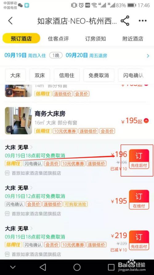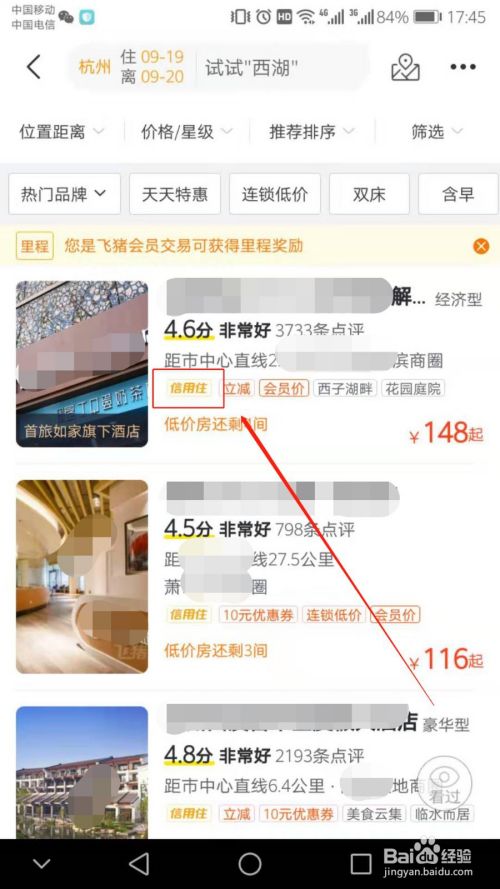 选择一家有标注【信用住】的酒店,并点击。