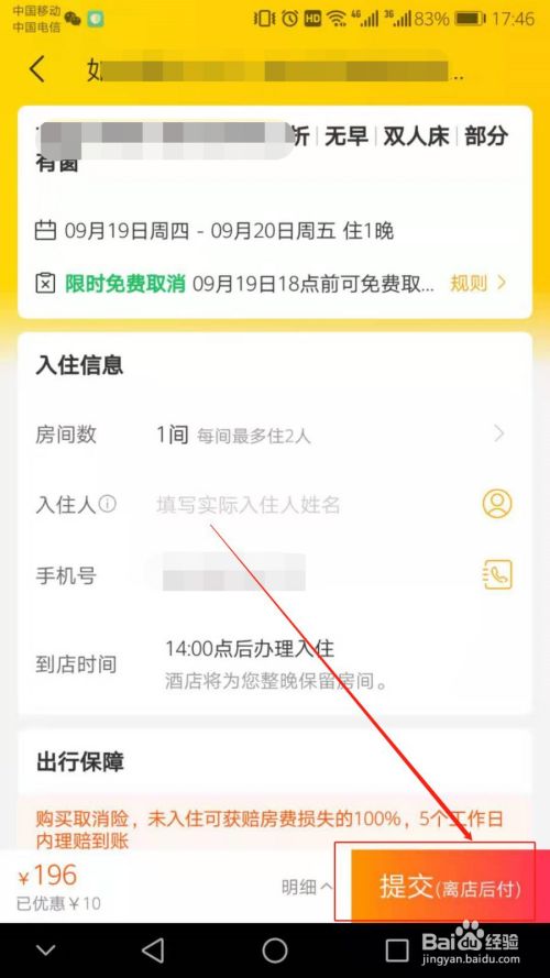然后点击【提交】,即可完成飞猪信用订酒店。