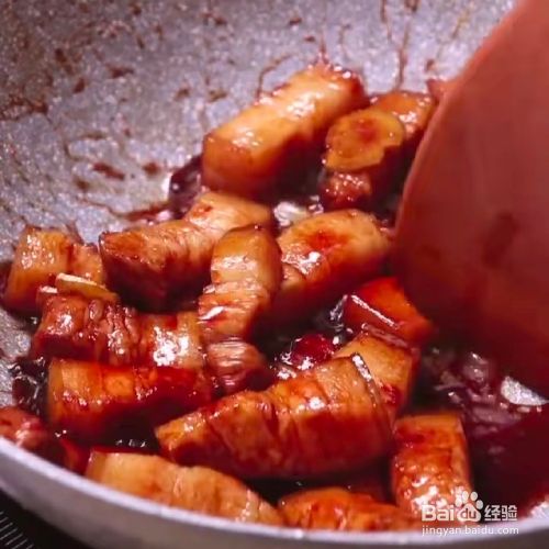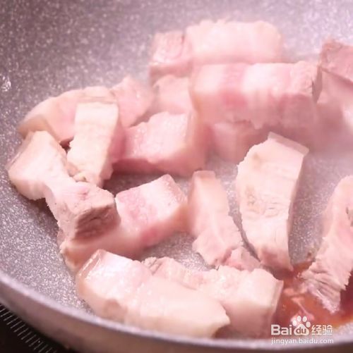 再加热水水里,与五花肉齐平。搅拌均匀,大火烧开炖至五花肉八成熟。