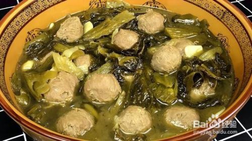 2、酸菜可以做汤吃。肉丸酸菜汤营养味美。