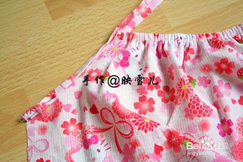 裙子分叉处缝上两蝴蝶结 。最后,将裙底包边车缝好。完成。