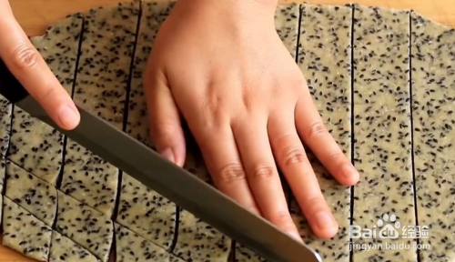 用刀切成小块。先横切在斜切