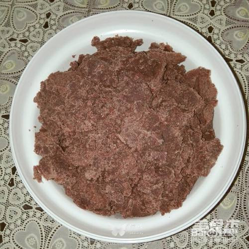 5把搅好的红豆泥倒入不粘锅内,用小火炒制,边炒边搅拌,以免糊底。