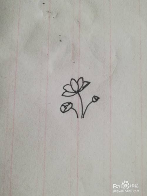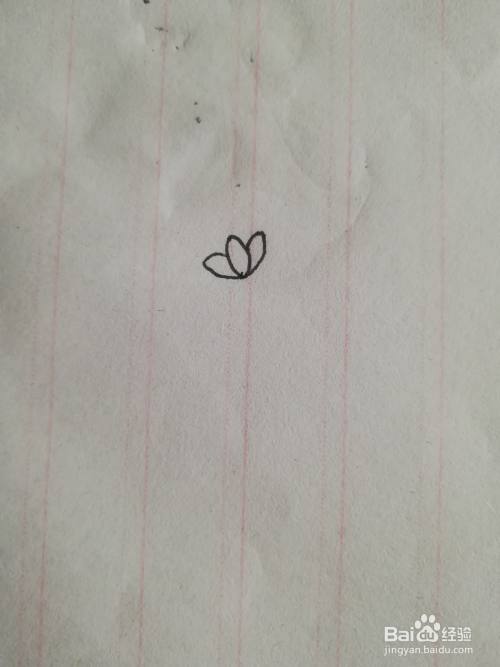 荷花的绘制相对来说比较简单,首先在白纸上画出一个小的椭圆,然后再椭圆两侧分别画出两个弧线,连接在一起,这是荷花的不同的花瓣。