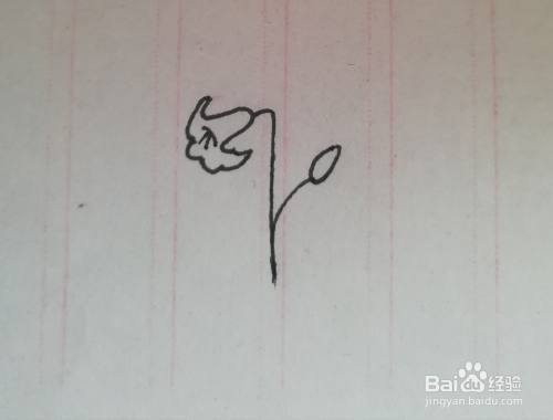 同样的方法,我们在两侧分别再扩展出两个曲线,一般情况下,我们画五个花瓣就可以完成,在中间那部分引出一条直线。