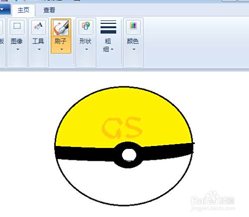 使用画刷工具,选取土黄色,在上半球涂上GS字样,这是GS的标志;