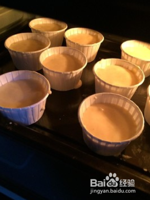 倒入纸杯,顶部可以撒些白芝麻或者黑芝麻。这些用料可以大概做10个纸杯。搅拌时会比较不太好搅拌,毕竟是干粉,而且会消泡,我搅拌时体积至少缩小了三分之一,不过烘烤时膨胀的特别好。放入预热好的烤箱里,中层、上下火、160度、25分钟左右。