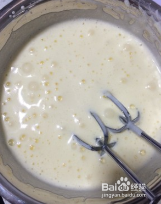 筛入普通面粉,用搅拌戚风蛋糕面糊的方式搅拌,直至均匀无干粉