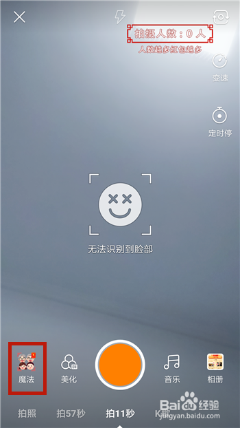 打开魔法界面后找到道具右上角带红包的魔法并点击使用这些道具,然后开始录制视频。