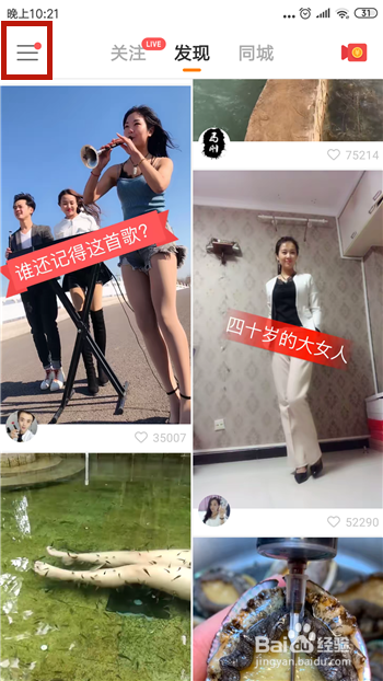 打开快手后找到左上角的【三】选项并点击打开更多界面。