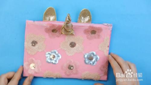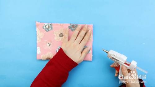 拿出一条拉链,把纤维布粘在拉链的两侧。