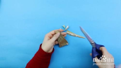 用金色的绳子做成螺旋形状,看起来像独角兽的角。