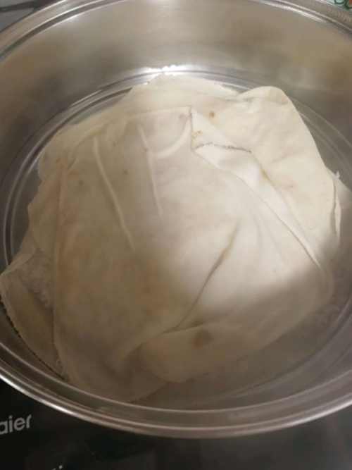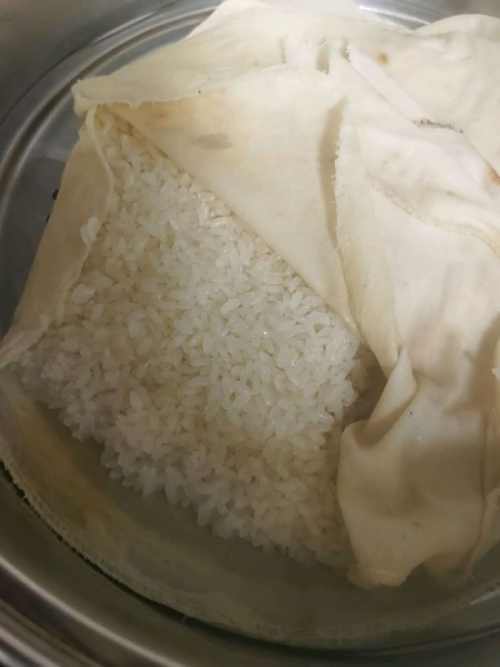 4开始蒸糯米,用纱布盖住,大概蒸20分钟左右左右,蒸了可以揭开自己用筷子尝一尝,熟了就OK,没熟再蒸几分钟。