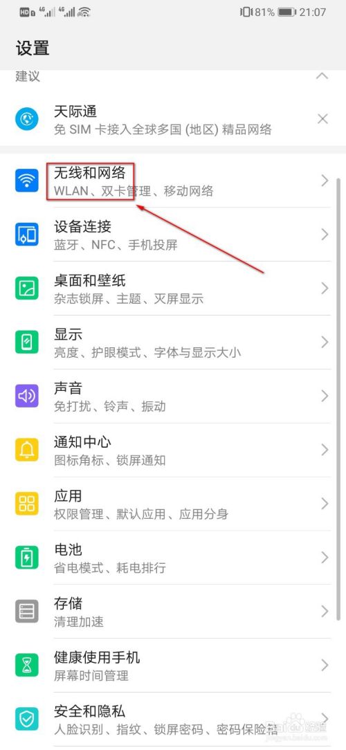 进入设置后我们选择“无线和网络”点击进入