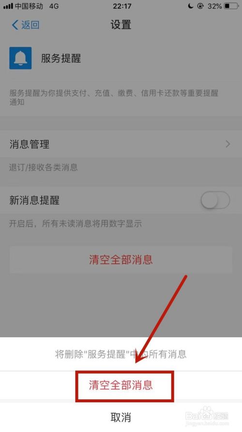 相信很多朋友都有在玩支付宝,大家在玩支付宝的过程当中是否会经常被一些服务提醒,消息所困了,那么如何才能够把这些服务提醒消息全部删除呢?关于这个问题,小编就和大家分享一下我的经验,希望能够帮助到大家。