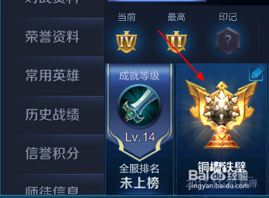 如果想知道自己没有展示的成就奖杯等级情况,可以点击基本资料界面右下角的成就详情按钮,在打开的成就界面里查看,自己当前成就等级对应的成就积分情况也会在界面里显示