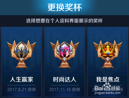 如果想对已经展示的成就奖杯进行修改,可以点击对应成就奖杯右上角的笔形状按钮,在打开的更换奖杯界面中选择想替换的成就奖杯就可以完成成就奖杯展示替换了
