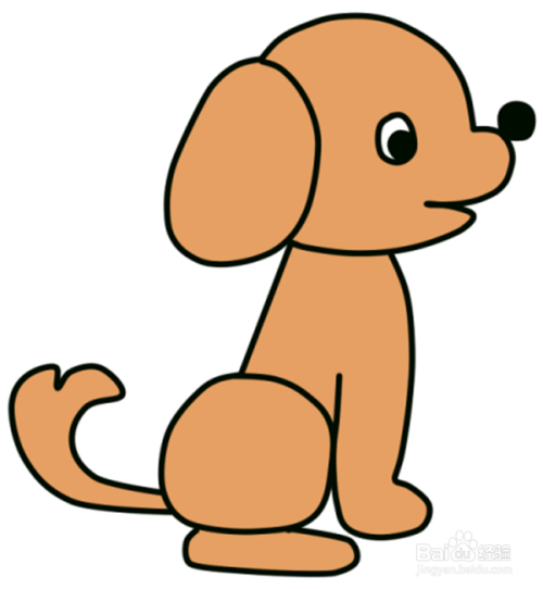 再将小狗的头、身体和尾巴涂成棕色,一只简单又可爱的小狗就画完了。